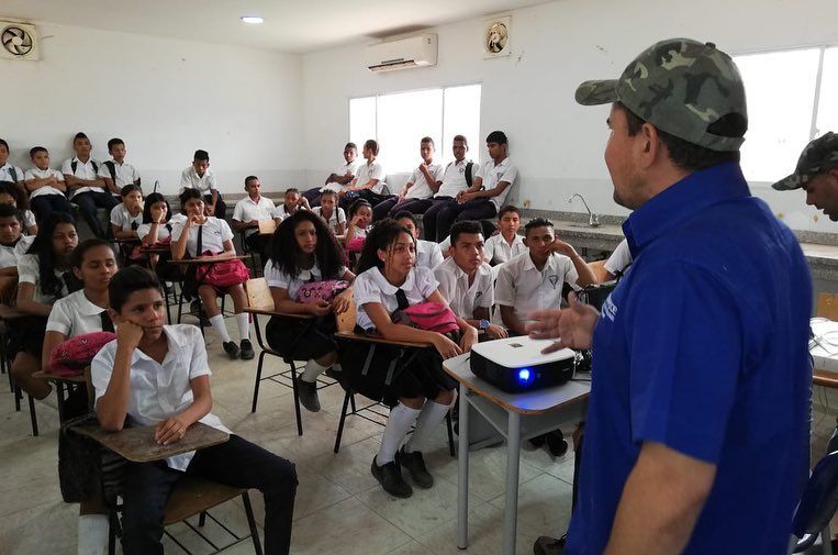 #EducaciónAmbiental l En el corregimiento de Cuatro Vientos, del municipio El Paso, niños de secundaria conocieron la campaña Héroes de la Fauna, cómo funciona la Red de fauna y flora de @corpocesar y del proceso de Ahuyentamiento y rescate de animales silvestres dentro del proyecto Parque Solar fotovoltaico del Grupo Enel Green Power. "Desde Corpocesar promovemos iniciativas que buscan generar conciencia para la protección de de la naturaleza y la responsabilidad social en el desarrollo de buenas prácticas ciudadanas y empresariales", manifestó el médico Veterinario de Corpocesar, Marino Zuelta. Con esta actividad los estudiantes a través de vídeos, fotografías y actividades lúdicas conocieron la biodiversidad del departamento.Los niños se comprometieron a cuidar y proteger la naturaleza en su territorio.
