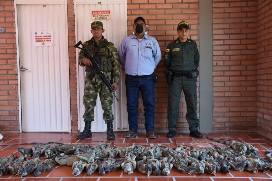 Se acerca la Semana Santa y con ella el incremento de la comercialización y consumo de carne de fauna silvestre. 51 iguanas vivas fueron recuperadas gracias al trabajo en conjunto de la Policía Nacional y Ejército Nacional. El Traficante fue capturado y puesto a disposición del ente competente para su judicialización. *Comprar y vender fauna silvestre o partes de ella, es un #delito. Conlleva penas entre 48 y 108 meses de cárcel y hasta 35 SMMLV de multa (Ley 1453 de 2011).